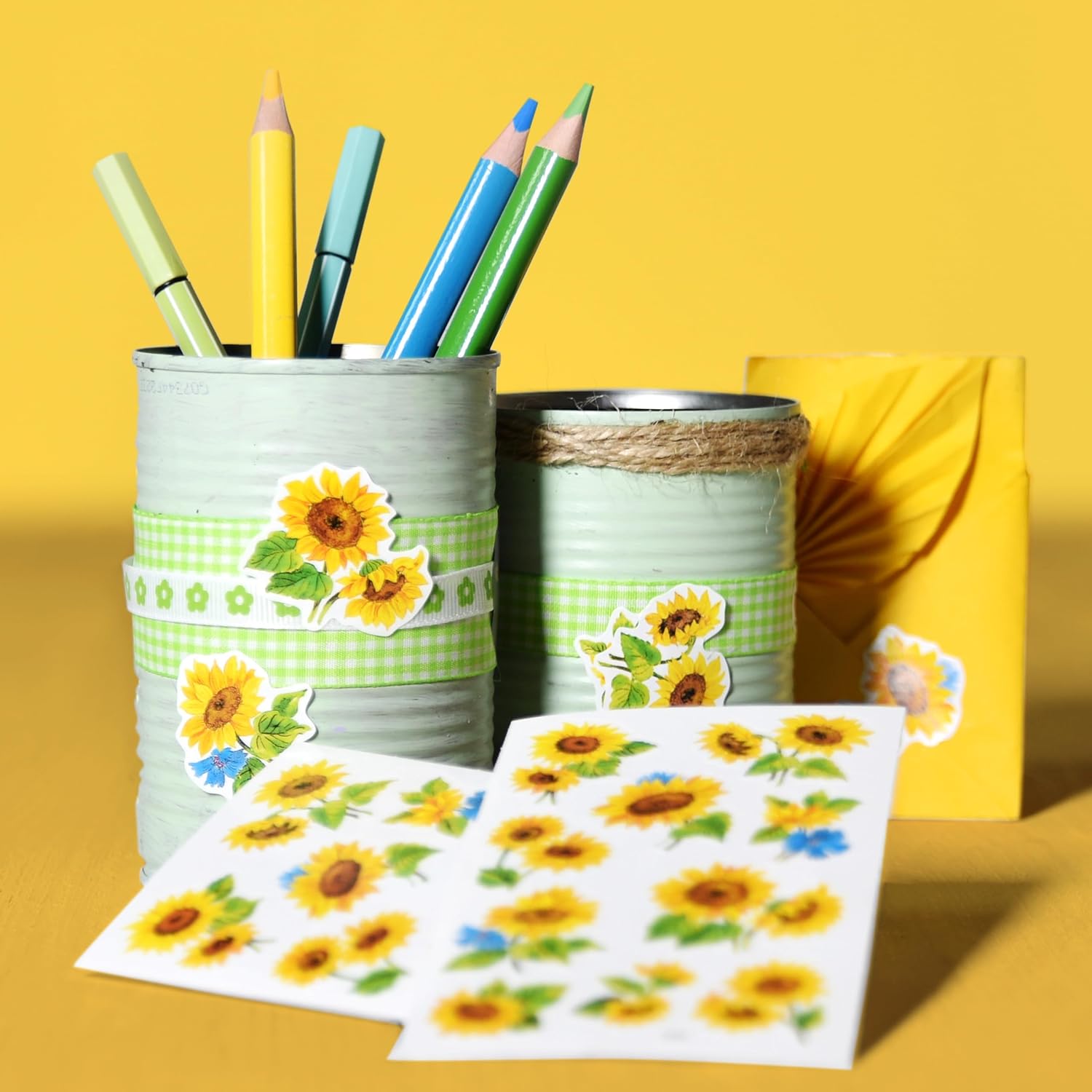 Ob zum Basteln, Dekorieren oder als liebevolles Extra – diese Sonnenblumen-Aufkleber bringen garantiert gute Laune in jedes Projekt!