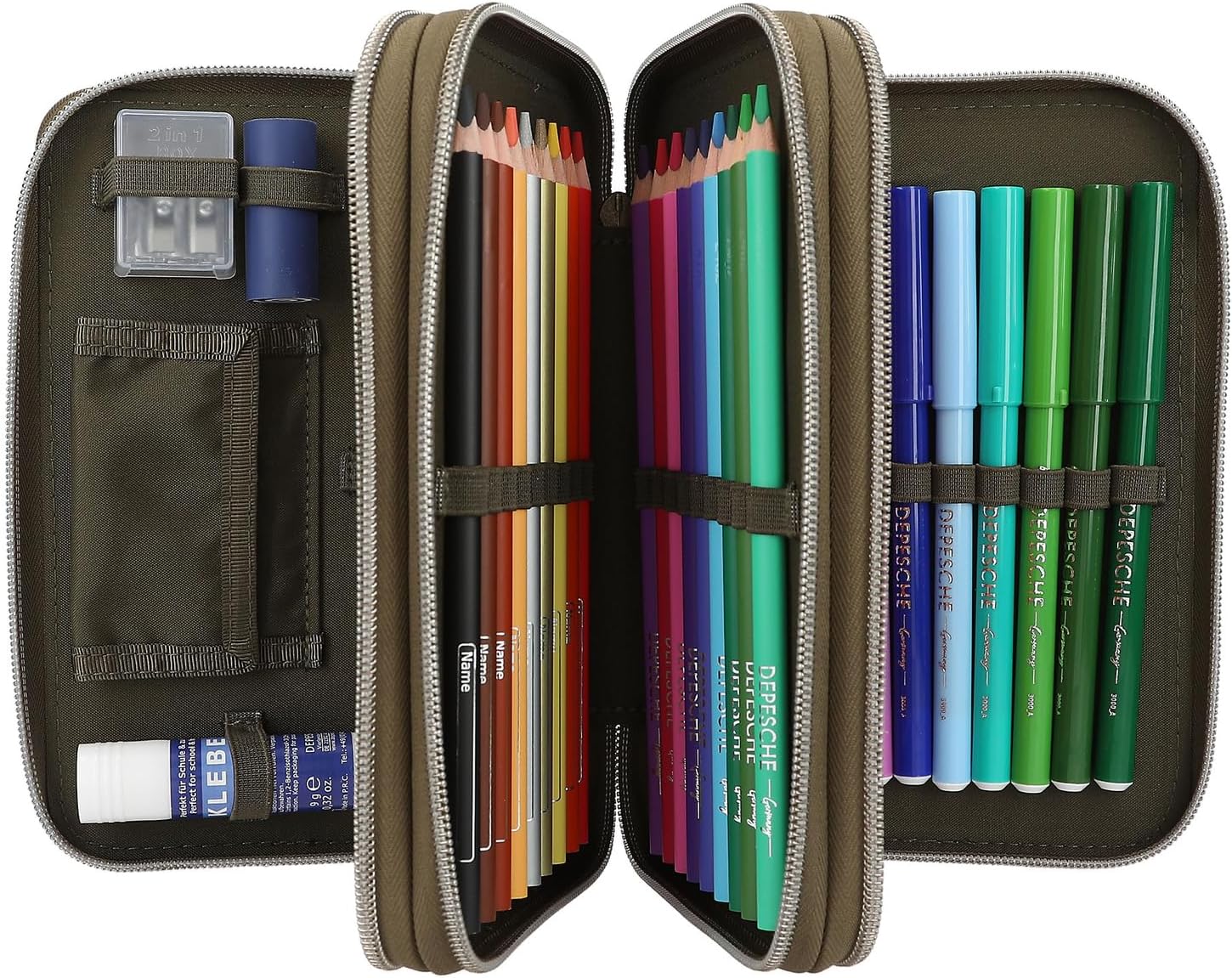 Die Dino World Federtasche 13135 begeistert mit einem kraftvollen 3D-Motiv und robuster olivegrüner Optik. Sie ist vollständig bestückt und bietet alles, was Dino-Fans für Schule und kreative Abenteuer benötigen.