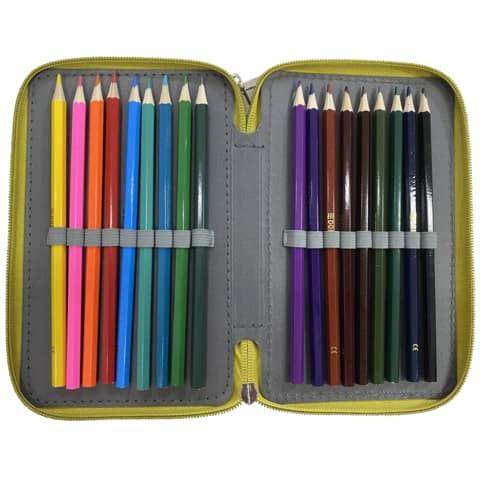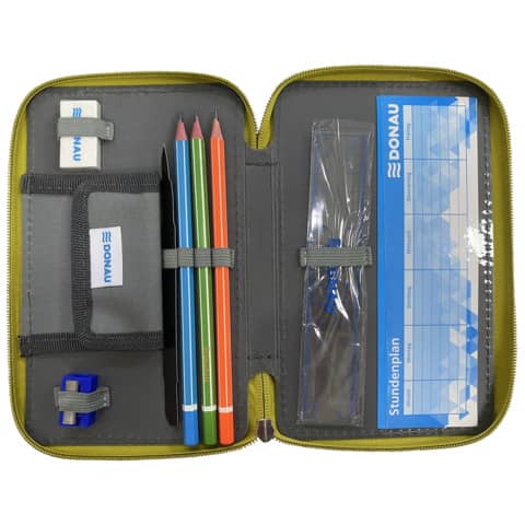 3-Stock-Federmäppchen, gefüllt – robustes Schul-Etui mit 43-teiligem Inhalt