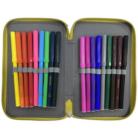 Das Etui ist vollständig gefüllt und sofort einsatzbereit. Der 43-teilige Inhalt deckt alle wichtigen Bedürfnisse des Schulalltags ab – vom Schreiben über Zeichnen bis zum Organisieren. Dank der kompakten Maße passt es problemlos in jeden Schulranzen.