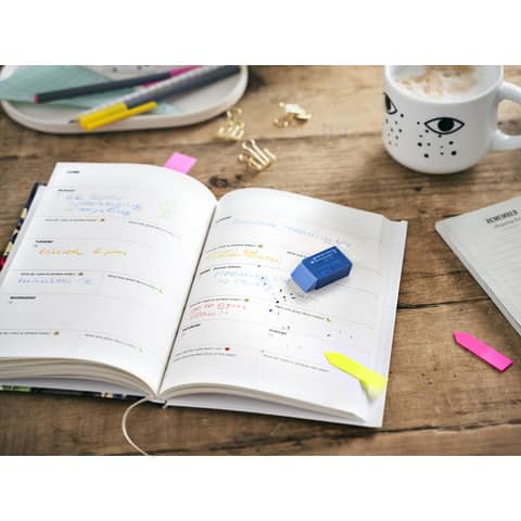 Dank der abgeschrägten Kante ermöglicht der Radierer ein besonders angenehmes, kontrolliertes und punktgenaues Radieren, auch bei feinen Details. Er ist für Papier und mattierte Zeichenfolie geeignet und entfernt Schrift und Zeichnungen sauber, ohne das Material unnötig zu beschädigen. Die transparente blaue Optik sorgt für ein modernes Erscheinungsbild.