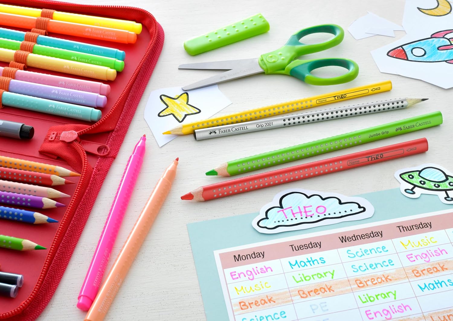 • 10 leuchtende Jumbo Grip Buntstifte mit weicher, farbintensiver Mine