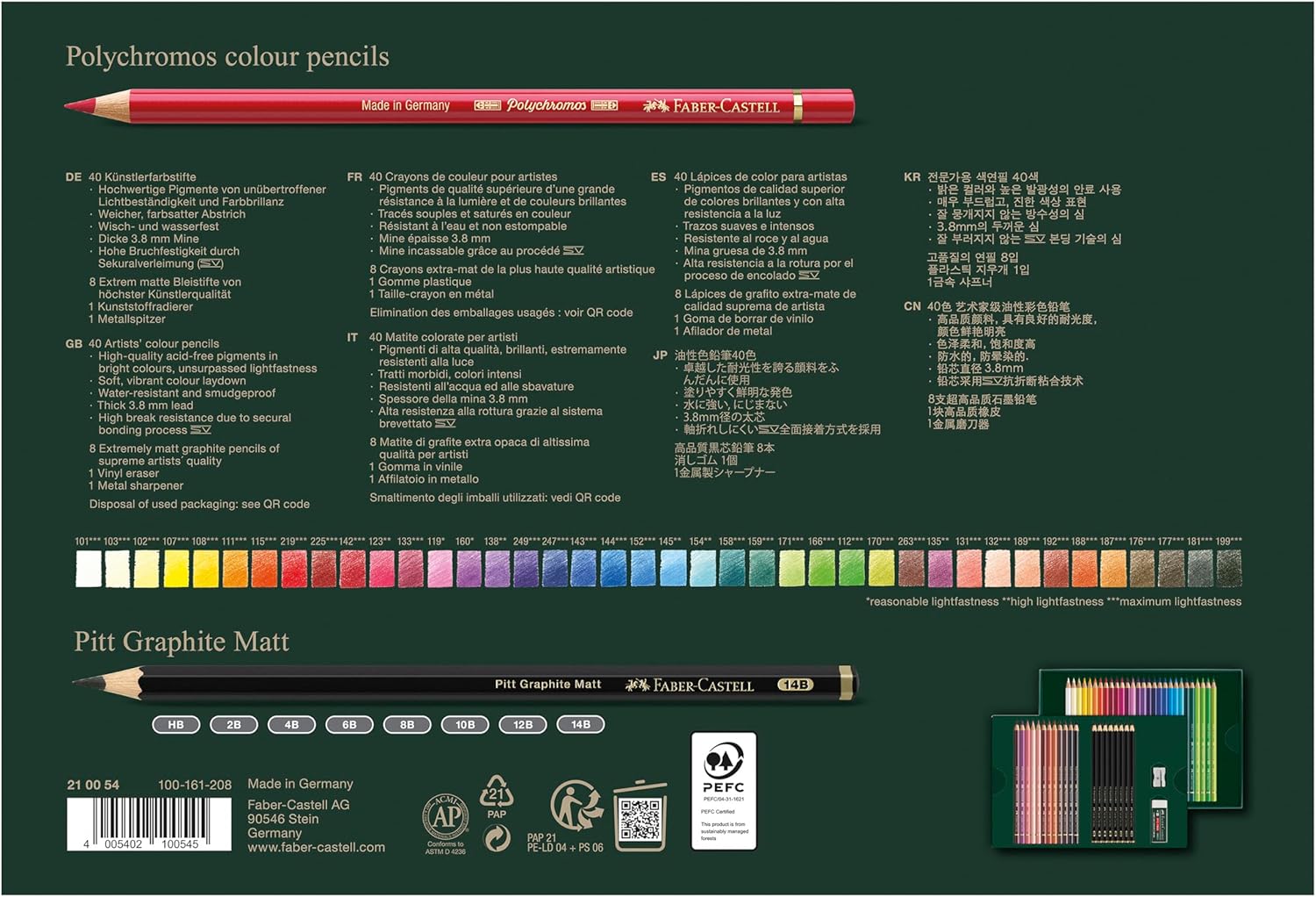 Faber-Castell 210054 Zeichenset, 50-teilig, Polychromos & Pitt Graphite Matt + Radierer & Anspitzer