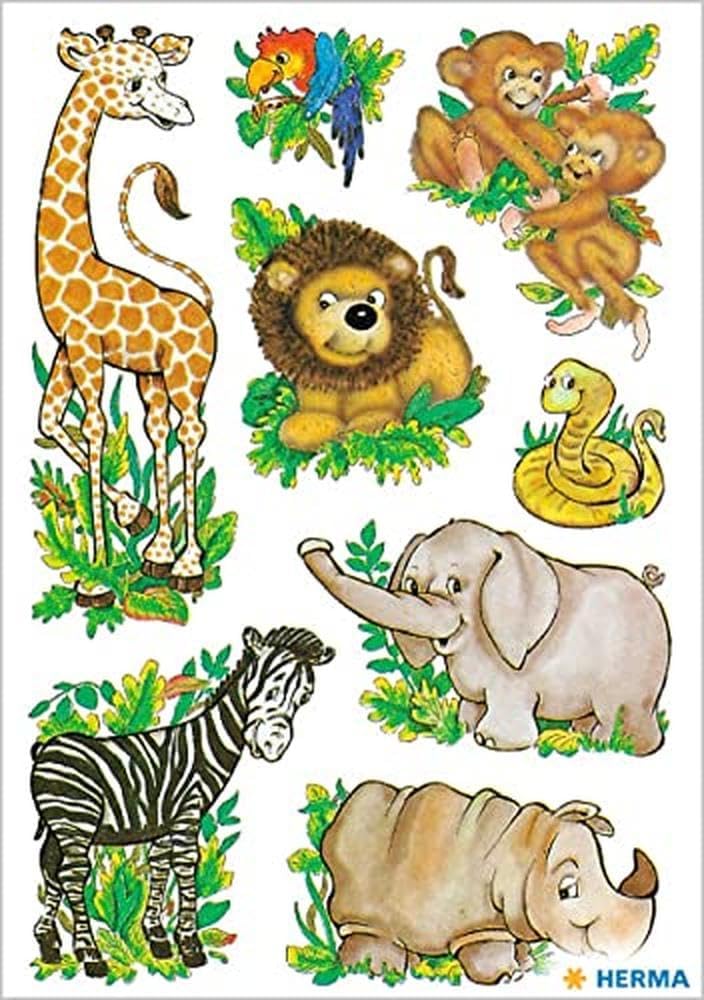 Produktinformationen "HERMA Decor Etiketten Dschungeltiere mit Zebra, Giraffe, Löwe, Affe, Elefant - 24 Aufkleber - 3793"