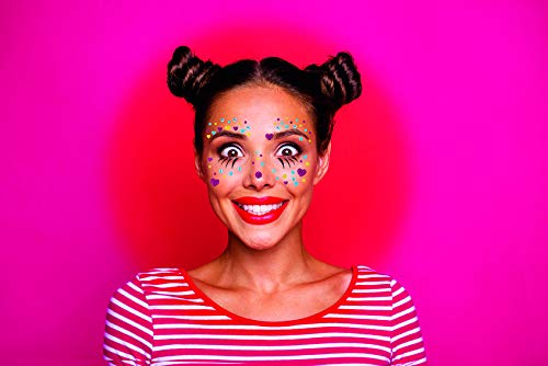Mit glitzernden Herz-Elementen, funkelnden Edelsteinen und einem liebevoll gestalteten Clown-Design entsteht ein einzigartiger Look, der ideal ist für Fasching, Karneval, Halloween, Kindergeburtstage oder fantasievolle Mottopartys. Die hochwertigen Sticker sorgen für strahlende Highlights und machen jedes Gesicht zum Hingucker.