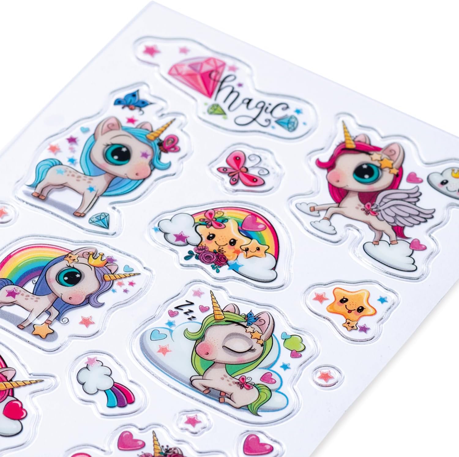 Ob als Geschenk, kleine Belohnung oder Mitgebsel bei Kindergeburtstagen – die Einhorn-Sticker sorgen für strahlende Augen und jede Menge Kreativität. Ideal geeignet zum Dekorieren von Stickeralben, Grußkarten, Fotoalben, Heften, Boxen und Scrapbooking.