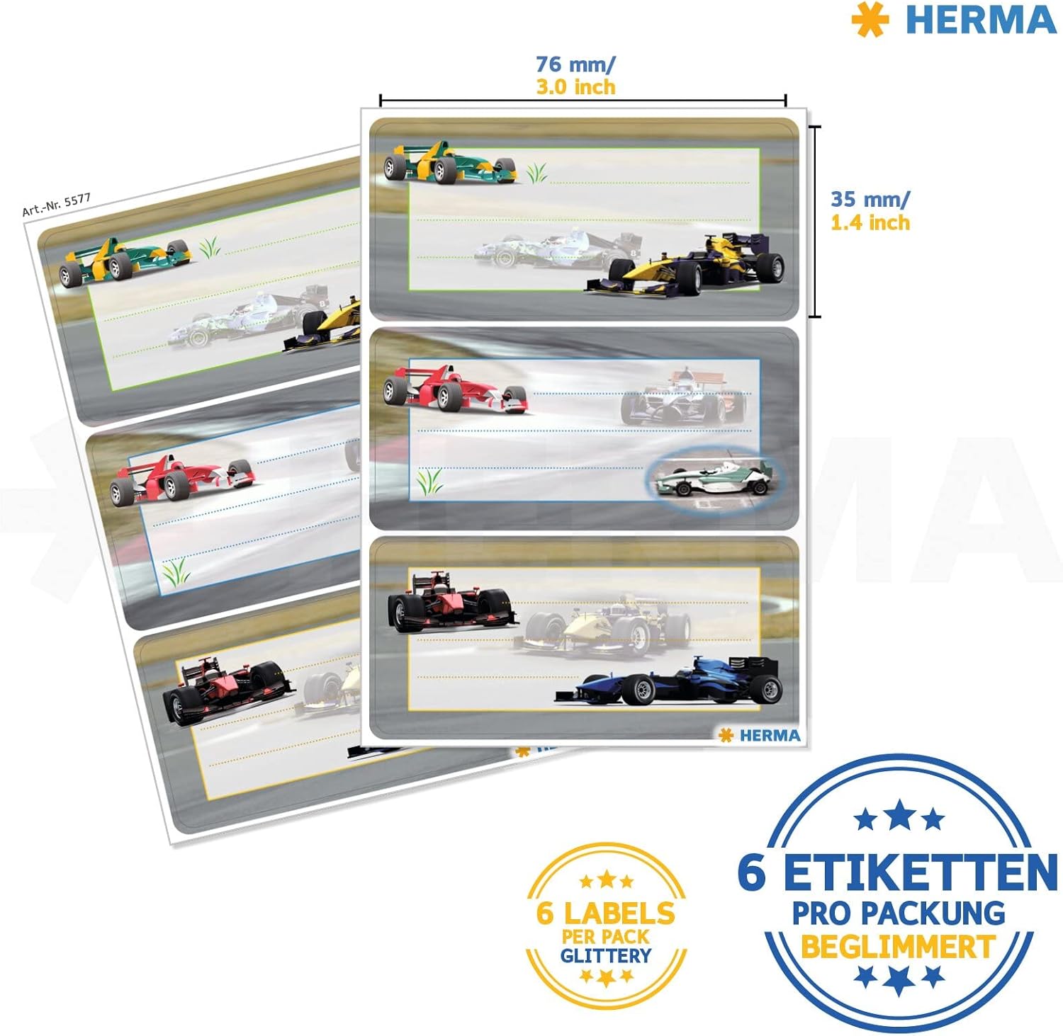 Produktinformationen "HERMA Vario - Buchetiketten / Buchaufkleber, Rennautos, 9 Aufkleber, 76 x 35 mm - 5577"