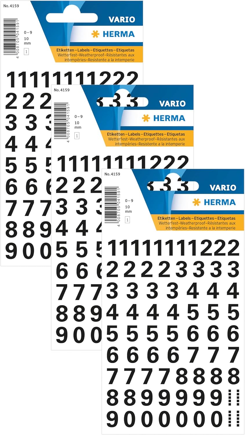 HERMA Vario Zahlenetiketten 0-9, 10mm, 71 Aufkleber - 4159 (3er-Pack)