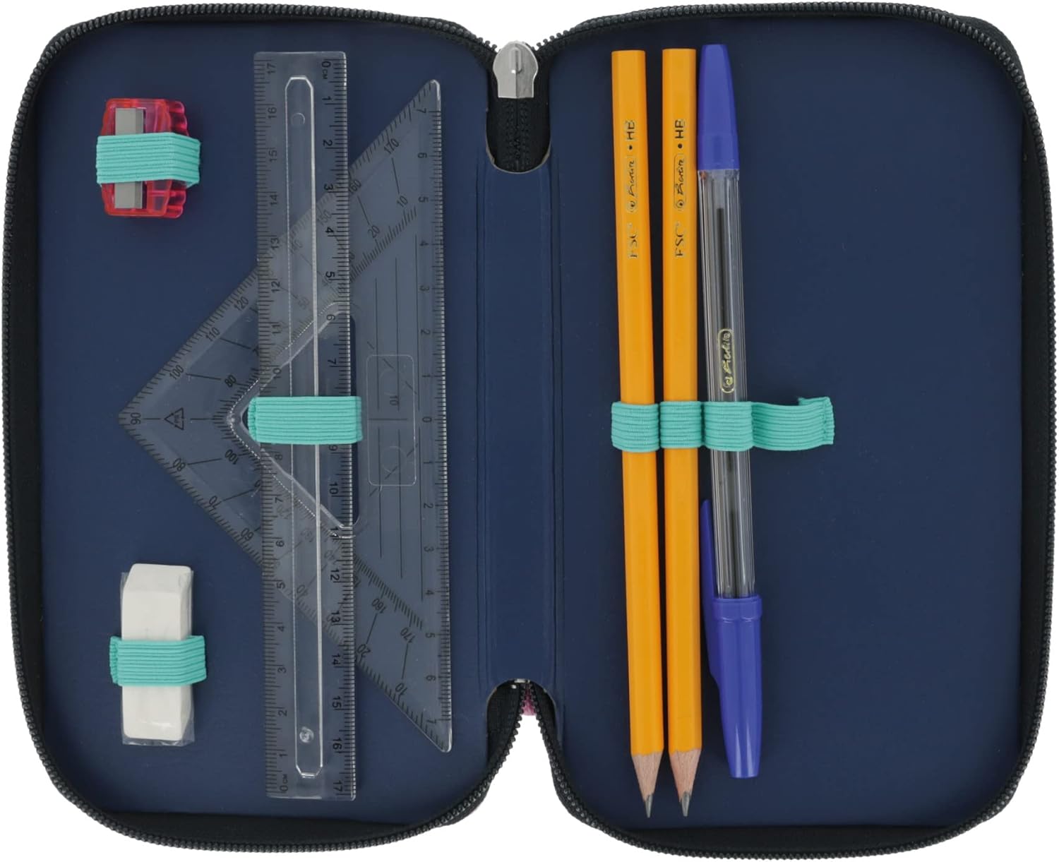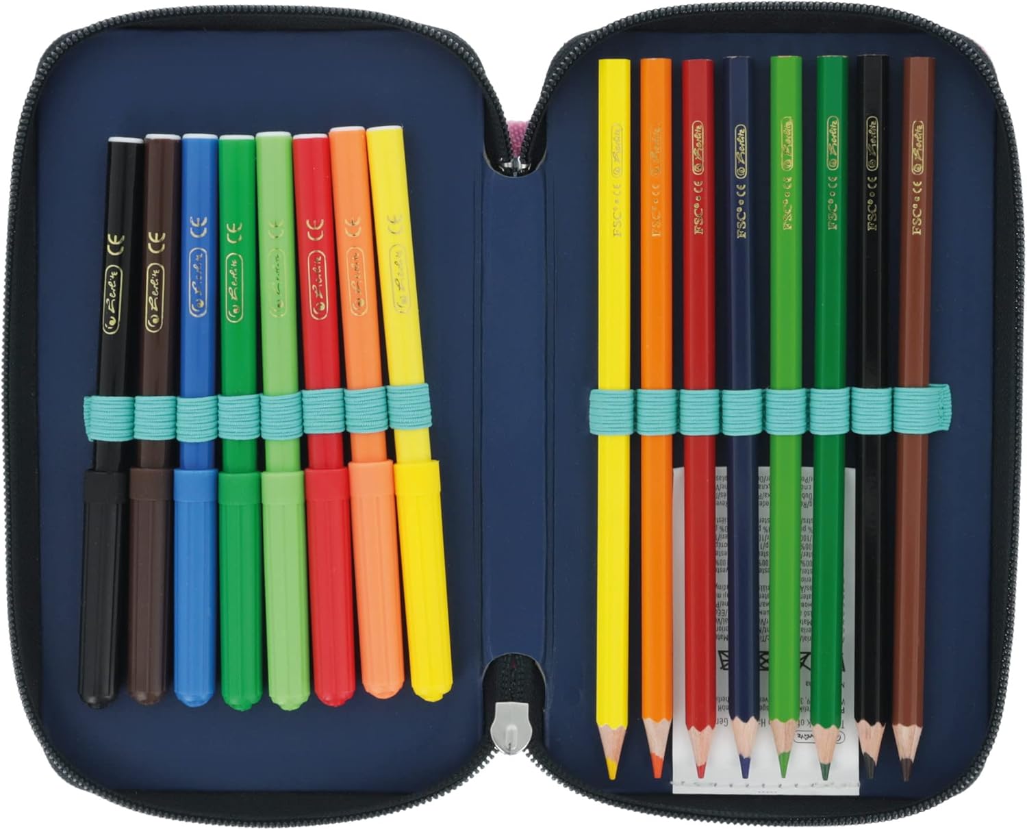 Die Herlitz Federmappe ist der ideale Begleiter für Schule, Uni oder Beruf. Mit zwei Klappen und farbigem Reißverschluss sowie zahlreichen Stifteschlaufen bietet sie ausreichend Platz und optimale Übersicht für alle Schreibutensilien. Das farbige Innenmaterial mit passenden Schlaufen sorgt für ein schönes Design und eine einfache Handhabung.