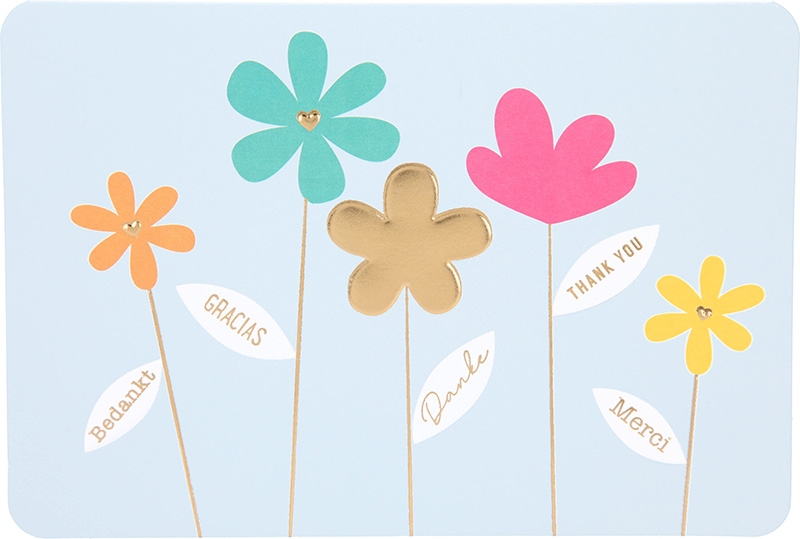 Kunterbunt Klappkarte 013- Bedankt Gracias Danke Thank you Merci