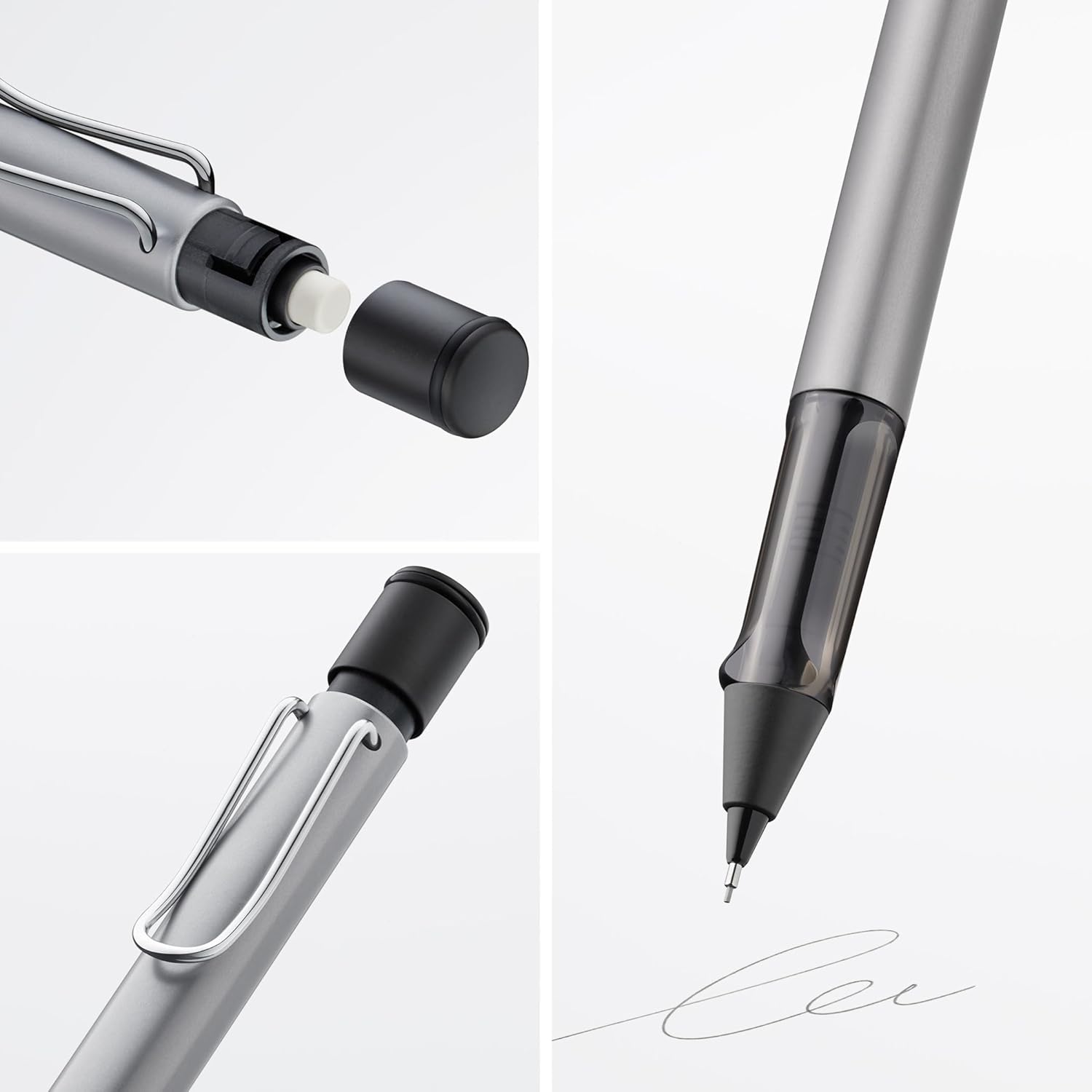 Ausgestattet mit einer LAMY M 41 Feinstrichmine (0,5 mm) und einem Radiertip LAMY Z 18 inklusive Reinigungsnadel. Optional erhältlich: passender Kugelschreiber, Tintenroller und Füllfederhalter der AL-star Serie – für ein harmonisches Schreibset.