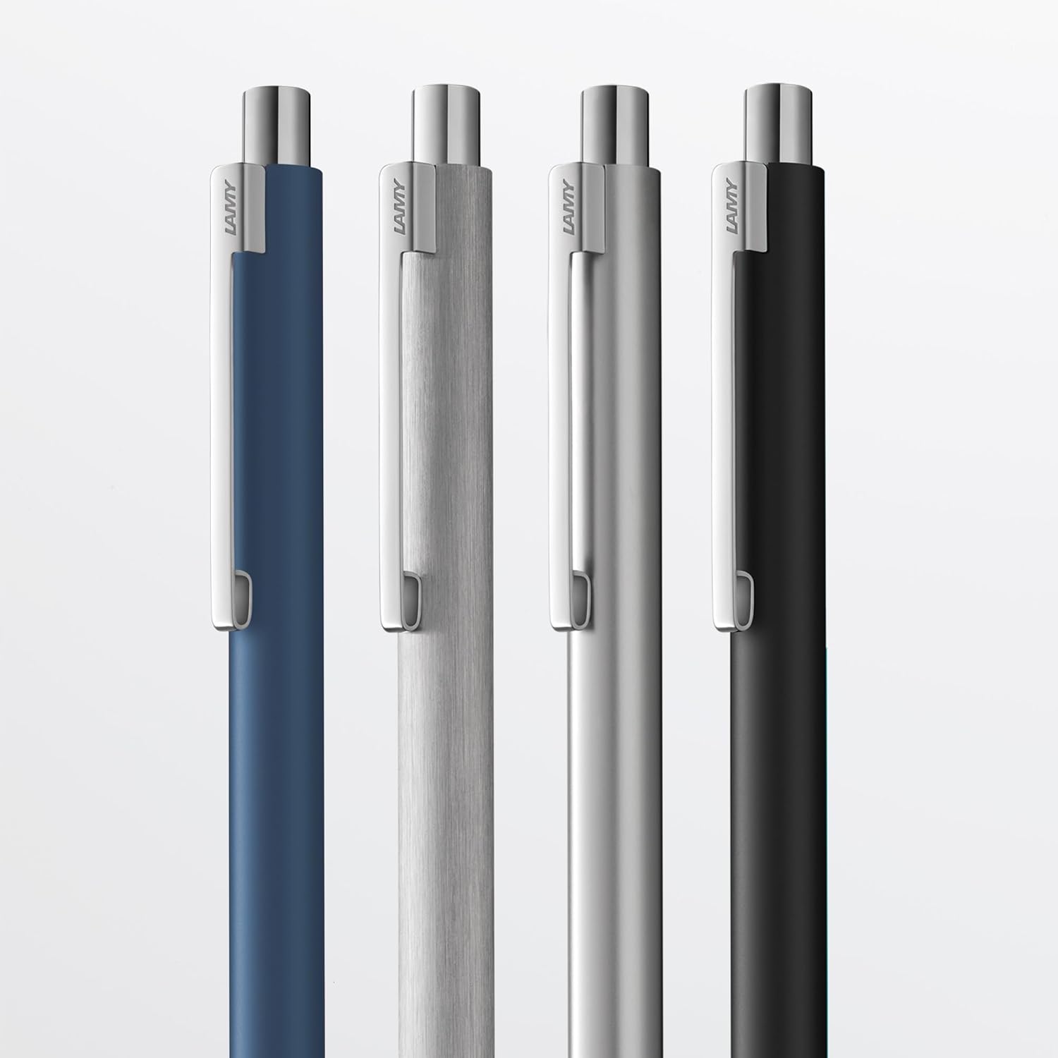 Der LAMY econ Kugelschreiber überzeugt durch sein reduziertes, modernes Design und höchste Verarbeitungsqualität. Das Gehäuse aus gebürstetem Edelstahl strahlt schlichte Eleganz aus, während der markant gebogene Clip und die charakteristische Griffzone das unverkennbare LAMY Design perfekt abrunden.