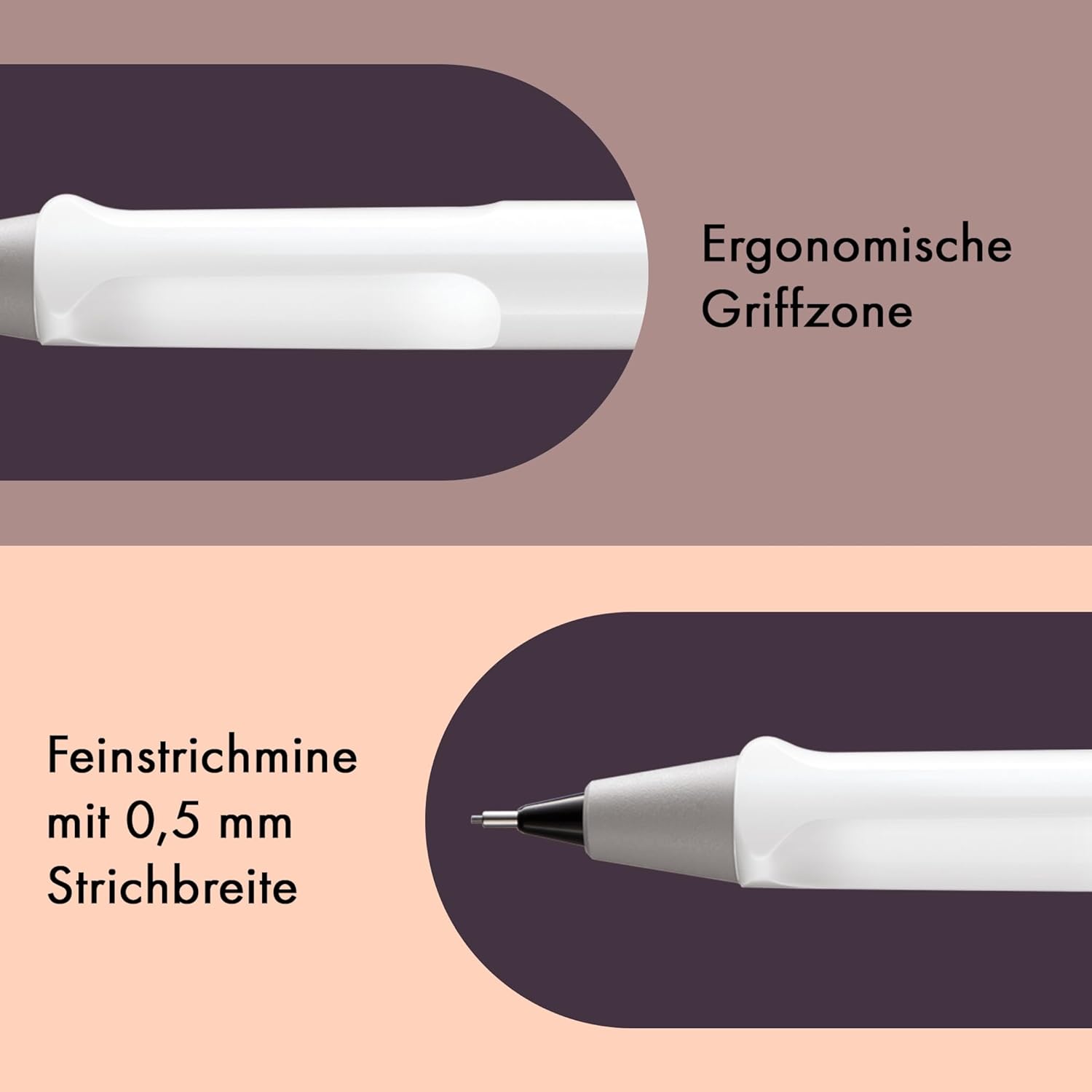 ALLTAGSTAUGLICH & FUNKTIONAL: Mit ergonomisch geformten Griffflächen bietet der Stift ein komfortables, ermüdungsfreies Schreib- und Zeichenerlebnis. Die charakteristische abgeflachte Form verhindert das Wegrollen – ideal für Rechts- und Linkshänder.