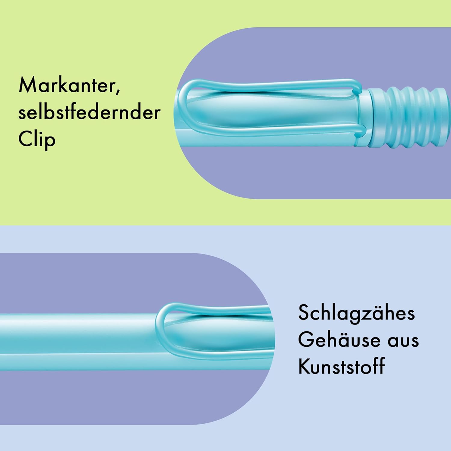 Der LAMY safari Kugelschreiber aquasky ist die perfekte Kombination aus modernem Design, Funktionalität und ergonomischem Komfort. Als Teil der ikonischen safari-Serie steht er für zeitlose Qualität, robuste Materialien und unverwechselbare Farbvielfalt.