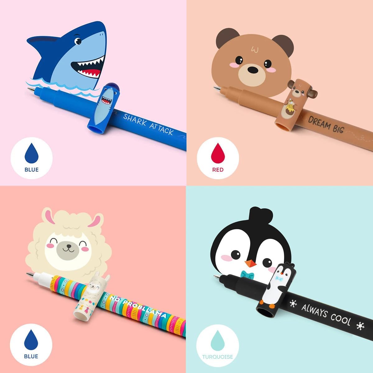 Legami 9er-Set löschbare Gelstifte mit Monster, Hai, Panda uvm.