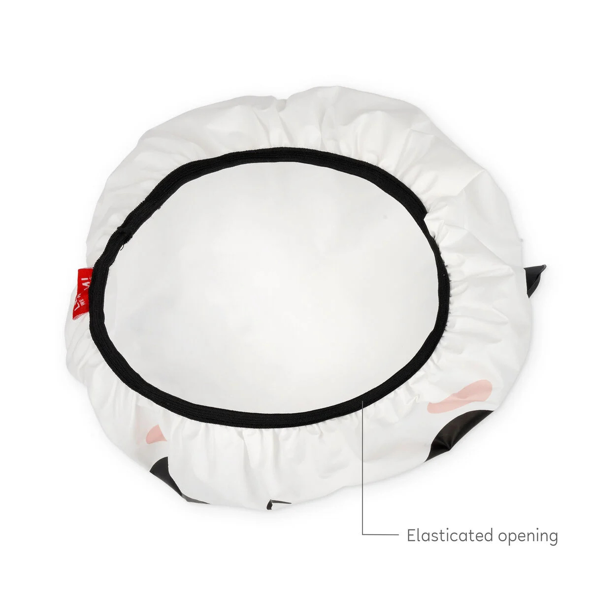• Wiederverwendbare Duschhaube mit witzigen Motiven