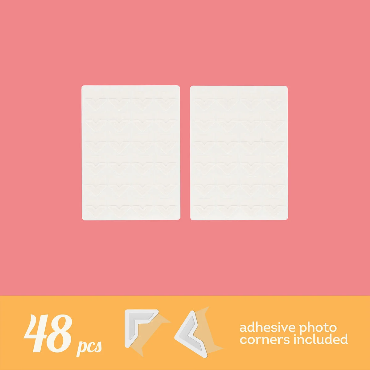Dank der beiliegenden 48 Fotoecken lassen sich Bilder mühelos befestigen – perfekt für Sofortfotos sowie Standardformate bis 10 × 15 cm.