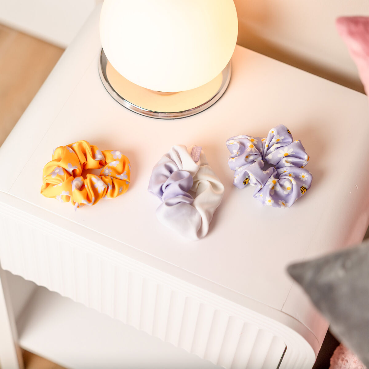 Mit dem Haargummi-Set „Hair We Are“ von Legami stylst du deine Haare im Handumdrehen – bequem, schonend und modisch. Die 3 Scrunchies aus Satin-Stoff überzeugen durch ihre weiche Oberfläche, die das Haar schont und keine Abdrücke hinterlässt.