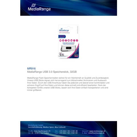 MediaRange USB‑Stick 3.0 SuperSpeed 32GB