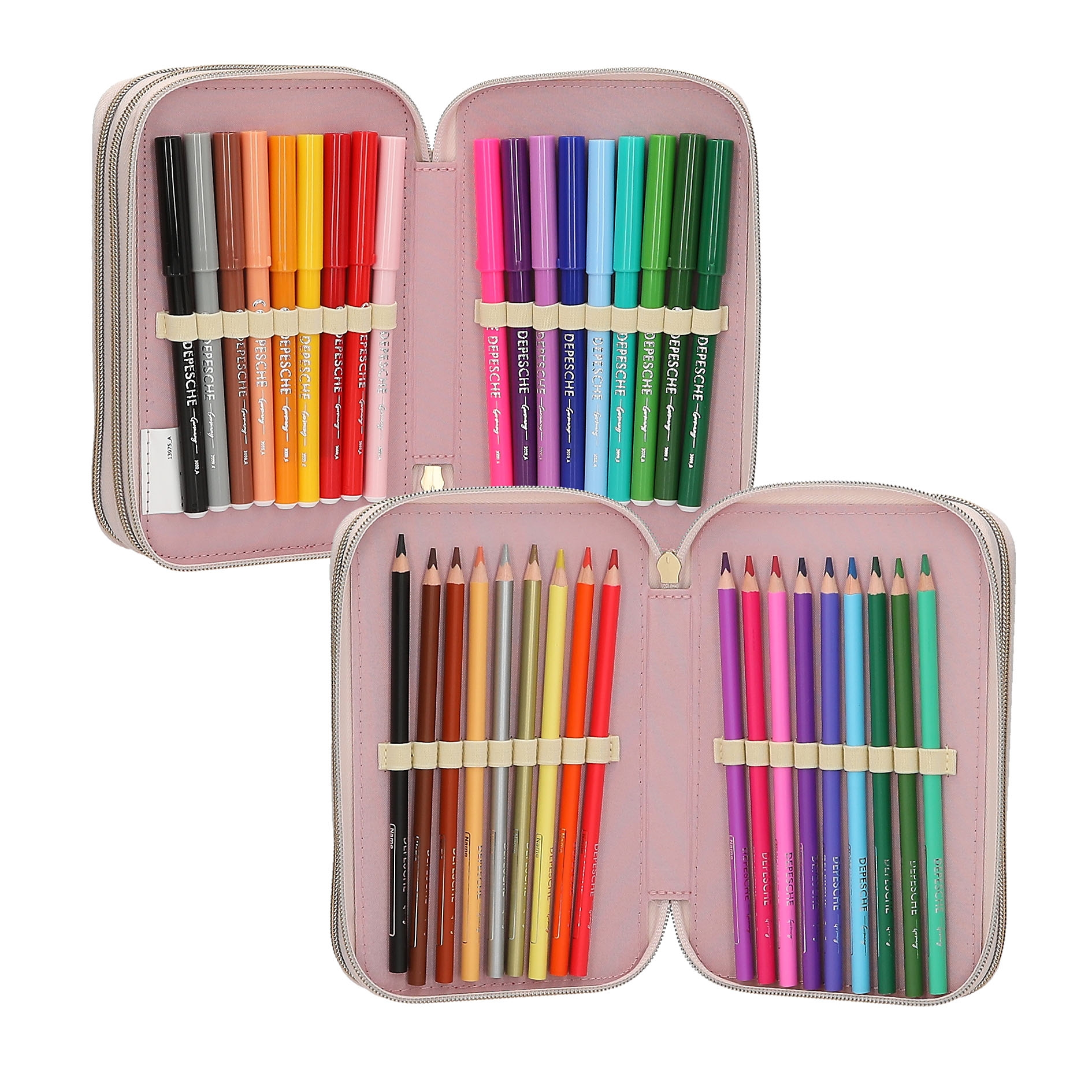 Die drei separaten Fächer sorgen für Ordnung und sind komplett gefüllt mit allem, was im Schulalltag benötigt wird. Das robuste Material aus 100 % Polyester ist langlebig und pflegeleicht.
