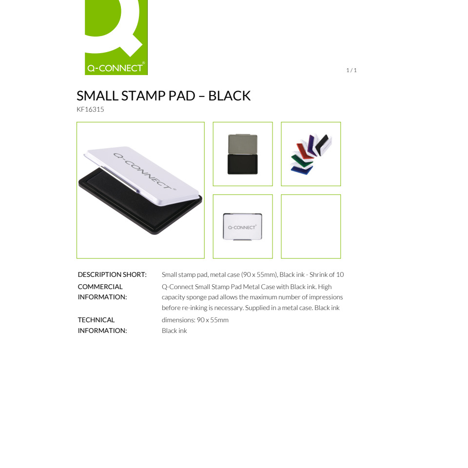 Das Q-Connect Stempelkissen-Set mit den Farben Schwarz, Blau, Rot und Grün bietet vielseitige Einsatzmöglichkeiten für Büro, Schule und kreative Projekte. Dank der kompakten Maße von 9 × 5,5 cm ist es ideal für die meisten Standardstempel geeignet.