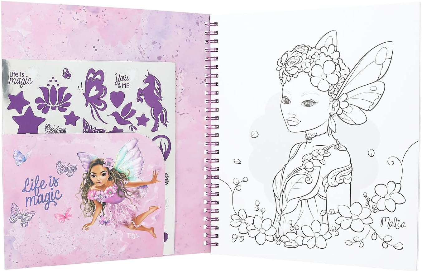 TOPModel 12976 Fairy Love - Malbuch mit Pailletten Design, 40 Feen- und Modelmotive inkl. Stickerbogen